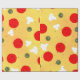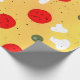Roligt Party levererar Gift Wrapping Papper för pizza party, firande, födelsedag... Juicy vector tillverkad pizza med crust, ost, salami, champignon-svampar, oliver och en sprinkl av oregano.