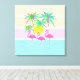 Coola Rosa Flamingos Sol och Handflatan Träd Wall Canvastryck
