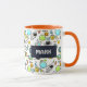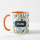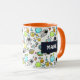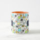 Personlig kaffe mugg med ett sött och färglöst mönster med alla typer av rymden kallat inslag. Bilder omfattar astronauter som flyter runt i sitt vita utrymme kostym. Stjärnor och planeter och coola fraktaser, rymdskepp och satelliter. Roligt och galen design. Perfekt för rymdälskande vetenskapsmän.