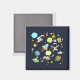 En magnet med ett sött och färglöst mönster med rymden temat inslag. Bilder omfattar astronauter som flyter runt i sitt vita utrymme kostym. Stjärnor och planeter och coola fraktaser, rymdskepp och satelliter. Roligt och galen design.