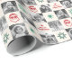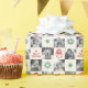 Omslagning papper med en coola Jultomten med solglasögon, God jul i ett reflexteckensnitt, reflexstjärnor och anpassningsbar foton. Röd- och grönt-skuggor på en lätt gräddvit färgad.