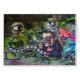 Osten öga tittar på honom, en man med jeans jacka, rödvit skjorta och fett i håret, 50:e stil sten'n-rullgraffiti i vienaustria på donaukanl
