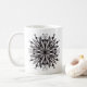 Gothic mandala mugg med löv och ormar digitalt uttagna i svartvitt, med skugga.