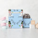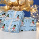 Coola Snögubbe Merry Bright jul Anpassningsbar Family Wrapping Papper. Vinterfödelsedag för kute på vintern firas blått vinterpajas från snögubbe mönster, för barn. Illustration av en coola snögubbe med solglasögon och handskar av grönt, rödscarf och svart top hat.