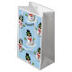 Personalisera Cute Festive Vinterfödelsedag, blåvintern snögubbe mönster för barn. Illustration av en coola snögubbe med solglasögon och handskar av grönt, rödscarf och svart top hat.