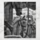 Nära synen på hästar från karusellen framför Hotel De Ville Paris. Barn, nostalgisk roligt. Coola, svart och vit foto i tätbebyggelse.