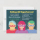En coola poster som inbjudan till inbjudan superhjältarna över för en födelsedagsfest. Den har minimalistiska manliga och kvinnliga superhjältar med masker. Anpassa enkelt med information om party.