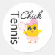 Tennis Chick T-Shirts, Apparel och Gifts med en söt gult chick sport för rosa tennis-utrustning och racquet-redo för ett tennis-spel. Perfektens gåva till den levande tennisspelarens chick.