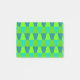 Anteckningsblocket Post-it har en Bauhaus-design som upprepar trapezoider i blått och grönt.