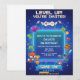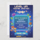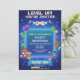 En söt design med TV-spelselement på en blå bakgrund. Anpassa detaljerna för en chic födelsedagsfirande!