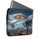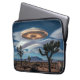 Coola UFO laptop sleeve. Har en UFO eller UAD som flyter över en öken med Joshua träd.