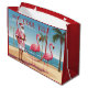 Vi presenterar vår Coola Yule Santa and Flamingos Beach-julskorgen - en blandning av helgdag och tropisk roligt! Tomten och hans flamingovänner på en sandstrand. Perfekt för att sprida helgdag med en roligt vrid.