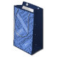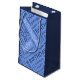 Den här smarta presentsäcken har en modern typografisk design med ord LYCKLIG och BIRTHDAY i blå nyans. På framsidan finns det utrymme för dig att anpassa påsen genom att lägga till mottagarens namn i motsvarande ljusblå färg. Påsens sidor är i ren marin blått.