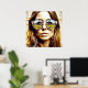 Coola ai-konst som skildrar en kvinna i solglasögon med en reflektion över en musikalisk festival utomhus i dem.