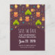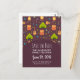 Spara datumet för en fest eller familjesammanträde med ett roligt campingtema-mönster. Satt på en rödbrun bakgrund. Element i mönstret inkluderar en lägereld, ett tält, en gitarr, en spade och ryggsäck.