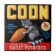 Etiketten för vintagefruktlådan för Coon brännmärker "Porto Rican" sötpotatisar från Louisiana.