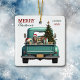 En tårblått pickup lastbil bär ett dekorerat Helgdag träd och presentat paket på denna söta julprydnad av glas. Tittar ut från skaften är en vacker Coonhound-hund med en röd och vit Jultomten hatt. En rustik träskylt på stötfångaren säger "Julturen". Den röda och grönt stiliserade texten längst upp till lämnat står "GOD JUL", med ditt namn (eller hund) och året vid högerna. Båda sidor har samma bild.