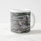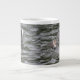 I fantastisk mugg finns ett foto av en Coot och hennes chick som simmar på en flod. Honan är grått med ett vitt plåster på huvudet och röd öga, medan den lilla fluffy chicken är blek grått med vit framsida.