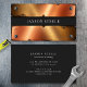 Med det här djärva affärskortet av koppar och svart industriellt material som har ett nitat metall-mönster. Idealisk för professioneller, ingenjör och hantverkare, kombinerar tålig hållbarhet med en professionell estetik. Anpassa den för att skapa ett varaktigt intryck på ditt varumärke.