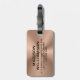 Elegant monogrammed copper brown metallic luggage tag with a stainless steel appearance. Customize with your information in black text. Please note, the material is not actual stainless steel but rather an image resembling steel.