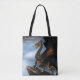 En stor drake med koppar-, guld- och svarta skalor på ett klippt kant med blå himmel på baksidan.