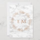 En modern bröllopsinbjudan i monogram med en lövkrans av kopparfolie runt monogrammet, som finns högst upp på inbjudan, och även på motsatt sida. På en bakgrund med faux white marble återges texten i en matchande kopparton. Copyright Elegant Inbjudan, alla höger reserverade.