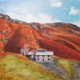 Coppermins bergsstugor. Det här är i Coniston, distriktet Sjö, England. Ursprunglig vattenfärgsmålning av Maria Kemp.