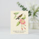 Post card med en vintage naturhistorik illustrerad av Antoine-Germain Bebetjänt, c.) A grönt hummingbird with white Feasted ben perches on a tropical mandevilla vine with rosa blommor, on a light golden gult parchment struktur bakgrund. Digitalt rengjorda och förbättrade, samtidigt som vintagens egenskaper bibehålls. Det finns gemensamma och vetenskapliga namn i dekorativt typsnitt. Matchande frimärke för USA-porto finns tillgängligt.