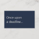 A modern, minimalist business card perfect for copywriters and freelance writers. The front features a dark navy blue background with the humorous phrase "Once upon a deadline..." in off-white text. The reverse has an off-white background with dark navy blue text and space for your contact details. All text on the card is fully editable.