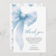 Tillägg en touch av mjuk charm till din efterfest-gratulation med detta Coquette Blå Slinga Bröllopsfest Tacksamhetskort. Med en delikat pastellblå slinga, subtila blommor och elegant skrift, kompletterar detta kort perfekt en feminin och romantisk bröllopsfesttema. Oavsett om du tackar gästerna för deras kärlek, närvaro eller genomtänkta gåvor, förmedlar detta kort ditt meddelande med tidlös stil och sötma.