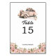 Coquette Blommigt Rosa Retro Car Bröllop Bordsnummer