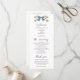 Coquette och bröllopsprogram med hand plockade illustration av blått och gult och blommor. Alla ceremonier i bröllop och bröllopsfestens namn som finns med på detta program.