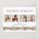 Modern och ren botanisk helgdag med en gräns med vattenfärgade rosa coquette bows och mistletoe, fyrfotsmall och elegant "Happiest Helgdagars" textgrafik hälsning i ett anpassningsbar-teckensnitt (anpassa färg i textredigeraren). Baksidan har extra fält och en massa hängmistlar som är bundna med en söt rosa båge.