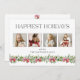 Modern och ren botanisk helgdag med en gräns med vattenfärgade rosa coquette bows och mistletoe, fyrfotsmall och elegant "Happiest Helgdagars" textgrafik hälsning i ett anpassningsbar-teckensnitt (anpassa färg i textredigeraren). Baksidan har ytterligare en tvåfotomall, fält och ett batteri av mistlar som är bundet med en rosa båge.