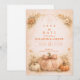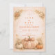 Varmt, romantiskt och enkelt säsongsanpassat, denna höstbröllopsdesign har en rik gammal pumpa omgiven av mjuka blommor och delikat höstlövverk. En graciös botanisk båge ramar in texten och skapar en balanserad och elegant komposition med subtil rustik charm. Den varma neutrala bakgrunden och brända orangea accenter gör den perfekt för en utomhus höstfirande, lada bröllop eller skördeinspirerad händelse.