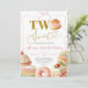 Coquette Bow Sötsaker Tårta 2-års Födelsedagsinbjudan, Två Söta Efterrätter Födelsedagsinbjudan, Redigerbar Rosafärgad Flickas Födelsedagsfest