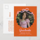 Coquette Bow Wavy Orange & Pink Graduation Photo Announcement Postcard