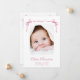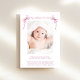 Ett sött kort för att meddela ditt flicka födelse med foto under mjuka rosor av delikat rosett band och coquette-bröd, som blandar ett minimalt estetiskt med en aning charm av vismisk vintage. Hennes namn är utvisad i ett skript för elegantens rosa och hennes födelsedag och födelsestatus är i klassisk serif-typografi. På baksidan lägger du till ytterligare ett bild och ditt personlig-meddelande till familj och vänner.