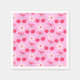 Det här är söta körsbär med bovar och vita blommor på rosans bakgrund. Det är söt napkin för babydusch med körsbärstema