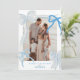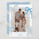 Fira säsongen i stil med detta charmerande, koquetteinspirerade julfotokort, med handdragna bovar, mjukt färg och en romantisk, limmad utformning. Framsidan har din favorit bild, som är uppbyggd av fyra handdragna bågar - två fetstilta gräddband med baby blue rand, plus två mindre accenter i klassisk himmel blå och ljusblå färg. Baksidan ger utrymme för tre mindre foton och ett helgdag-meddelande som ställs mot en uppfriskande frostig blå bakgrund med ett känsligt båge mönster.