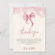 Minimalist and elegant pink bow baby shower thank you card with a beautiful pink bow and handwritten typography over a cream yellow background with watercolor elements. Illustrated and designed by Patricia Alvarez.