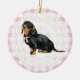 Coquette Dachshund Dog Pink Gingham Bows Julgransprydnad Keramik
