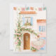 This bachelorette party invitation has a folk dancer with a pink, white a blue dress with papel picado banners on top. All the important party details can be personalized. The back has a coordinating Mexican pueblo scene. Colors include blue, yellow, pink, white and coral.