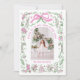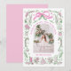 Coquette-julfamiljens fotopatchkort med Grönt Rosa Doodle-Helgdag-julkort innehåller ditt favoritfoto med en modern personlig coquette-blommigt ram i rosa och grönt med en rosa båge och anpassningsbar med personlig och namn med din . Perfekt för familj och vänner till jul och helgdagar. Designad av Evco Studio www.zazzle.com/store/evcostudio