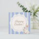 Send warm springtime wishes or elevate your table settings with this exquisite coquette aesthetic square flat card. The design centers around a stunning vintage white lace doily, accented by a delicate watercolor bunny and a soft blue ribbon bow, all set against a subtle striped background. This versatile card functions beautifully as a personalized Happy Easter greeting card to mail to loved ones, or as a custom enclosure card for a luxury gift basket. The text is entirely editable, allowing you to craft the perfect heartfelt message, add your family name, or even repurpose the card as an elegant menu display for your grandmillennial brunch tablescape.