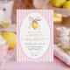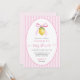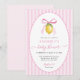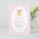 Celebrate the upcoming arrival of your little one with this adorable coquette lemon baby shower invitation. Featuring a charming pink striped background and a sweet watercolor lemon with a pink bow, this design is perfect for a spring or summer baby shower. The elegant script font adds a touch of sophistication, while the playful lemon motif brings a cheerful vibe. This invitation is sure to set a delightful tone for your special celebration and impress your guests with its unique and charming design. Announce your joyous event with this beautifully crafted, squeeze-the-day themed invitation.