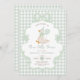 Celebrate your little one’s milestone in the sweetest way with our “One Silly Goose” first birthday invitation! This charming watercolor design features an adorable goose in a sage green party hat, holding a balloon, surrounded by delicate green ribbons and a soft pastel gingham background.
