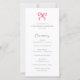 Elegant och enkel Rosa båge coquette bröllopsprogram, med serif-teckensnitt.