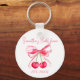 Coquette, rosa söt båge, körsbär, akvarell, möhippa nyckelring.