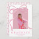 Coquette Rosa Band & Slingor Foto Examen Inbjudan med rosa band och slinga mönster på baksidan.